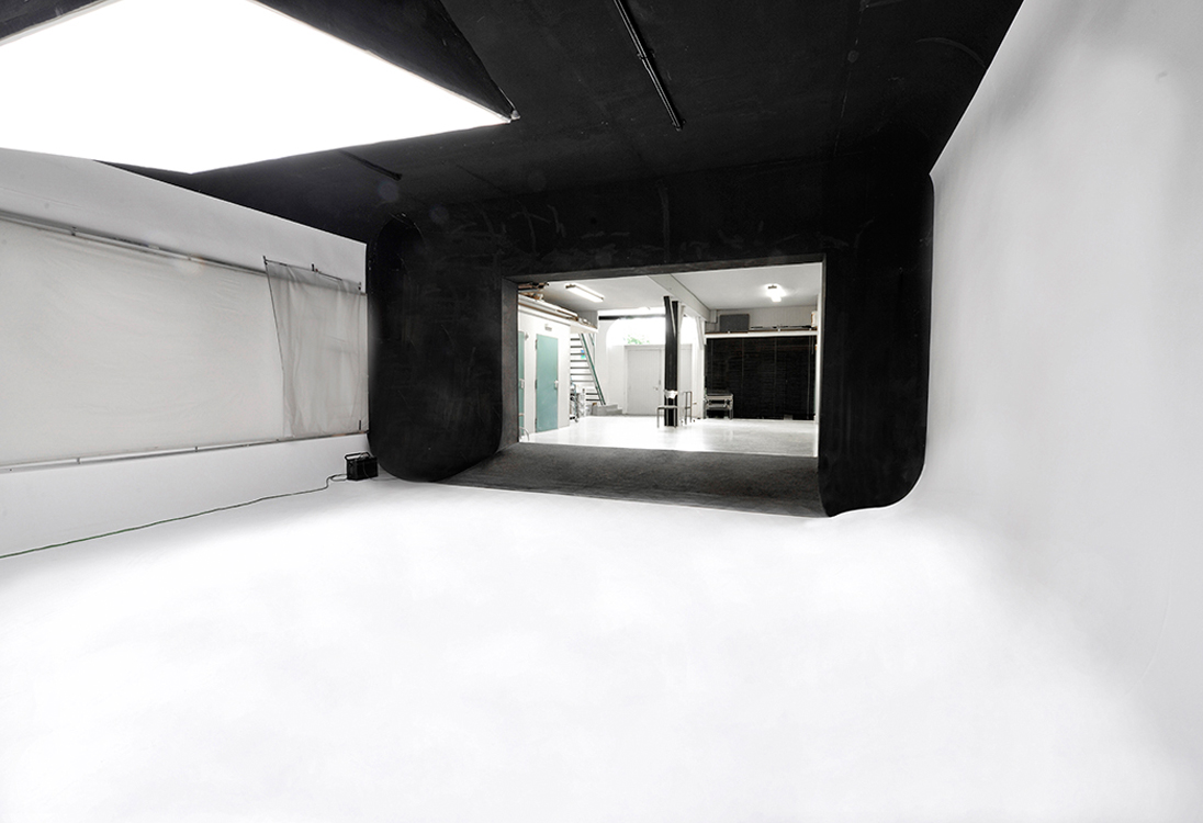 Im unteren Bereich bietet das Aufnahmestudio mit einer integrierten Hohlkehle von 7.50m x 7.00m,