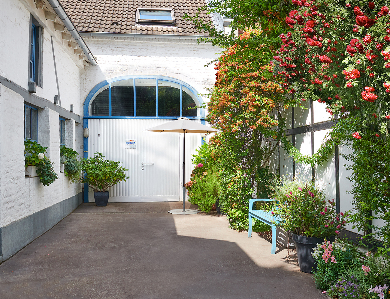 Die Studioräume können ebenerdig befahren werden und der Innenhof bietet mehrere Parkmöglichkeiten.Der Innenraum des Studios teilt sich in verschiedene Bereiche auf: